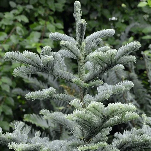 Поздней весной, в начале июня побеги растения опушаются пыльцой розоватого окраса. Шишки крупные, длина их достигает 200 мм, ширина – 100 мм. Молодые шишки имеют фиолетовый окрас, по мере роста покрываются желтовато-розовыми чешуйками. На ростках образуется большое количество шишек, раскидисто свисающих в стороны, под своей тяжестью, что становится дополнительным украшением невероятно привлекательной кроны. Семена крупные (1,2 см), серо-коричневого цвета, имеют крыло длиной приблизительно 1,5 см. Зачастую используют пихту для создания живых изгородей, ведь ее пышная, густая крона может выполнять функции живого забора, через который сложно что-либо разглядеть. Учитывая, что это лесообразующая пихта, она может использоваться для создания хвойных рощ. В комплексе растения прекрасно сочетаются, создавая интересный ландшафтный дизайн. Не менее интересно пихта выглядит в одиночной посадке, ее пушистая крона достойна восхищения в любое время года. Зимой, при соответствующем декорировании, не редко играет роль новогоднего дерева.
