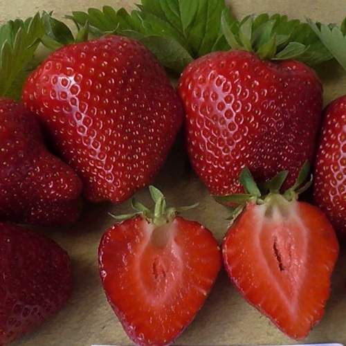 Ягоды клубники Сандра имеют ярко-красный цвет и правильную вытянутую коническую форму. Они имеют средний размер и весят примерно 20-30 грамм каждая. Вкус ягод десертный, сбалансированный, с приятной, освежающей ноткой фруктов. Мякоть ягод клубники Сандра красного цвета, сочная и нежная, при этом плотная.